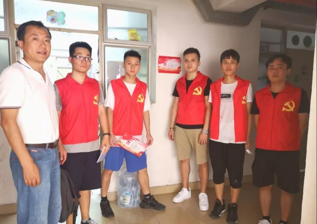 在宣讲会结束后,主题党日活动开始党员示范岗挂牌仪式。支部书记钟丽华老师和支委刘海波老师分别带队前往社区进行挂牌仪式。员工党员从老师手中接过光荣的党员示范岗牌并将其粘贴于宿舍外墙,党员先锋模范精神烙印于心。