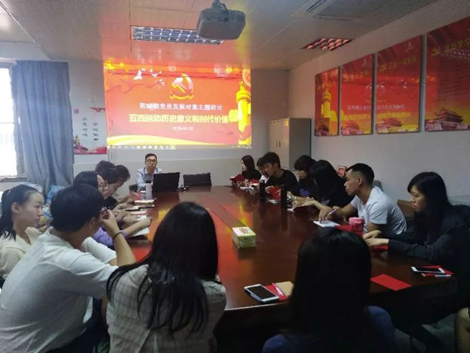 2019年4月28日下午14:20,伟德官网专职组织员陈少典老师组织公司党员发展对象在莞城校区6403党员活动室进行了主题为“五四运动的历史意义和时代价值”研讨会。