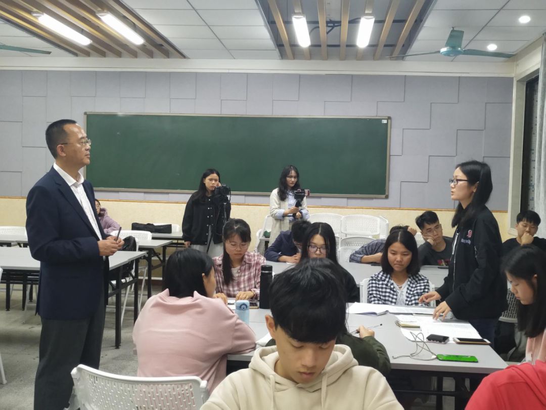 班会伊始,龚红兵老师从大湾区的建设对以珠三角为首的城市群的影响以及作为法学员工如何学习和实践两会精神等方面来引导和鼓励同学们积极踊跃发言,着重谈谈自己作为一名当代老员工的如何融入大湾区的建设、如何抓住大湾区的历史机遇,充分利用大学期间宝贵时间不断学习、提高自己的政治理论素养和法律专业知识。