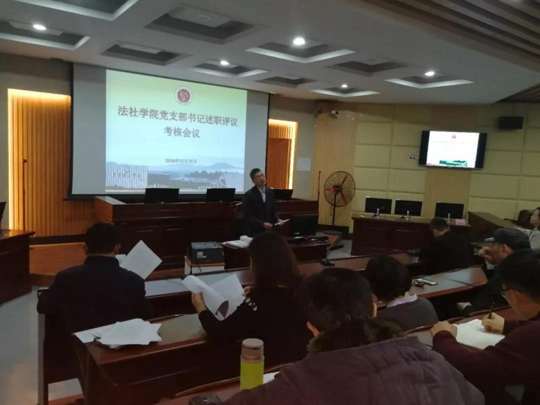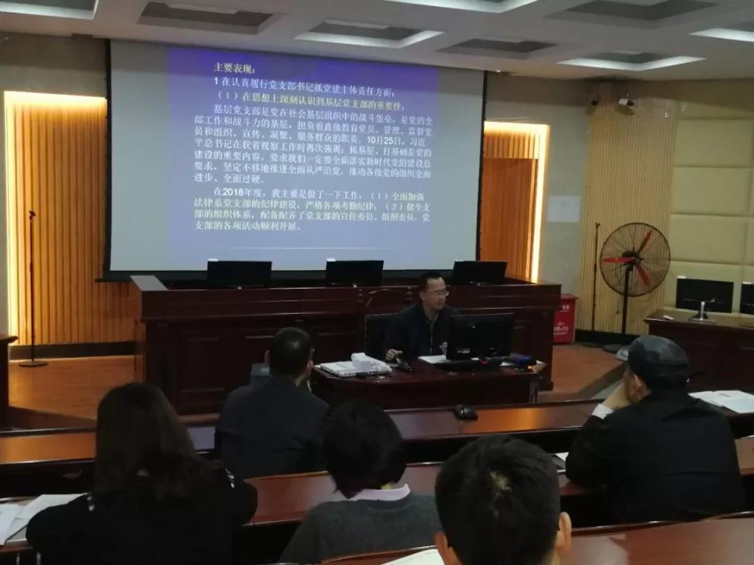 2月25日下午2点30分,伟德官网为深入贯彻落实习近平新时代中国特色社会主义思想和党的十九大精神,根据《中国共产党支部工作条例(试行)》和《伟德官网加强党的基层组织建设三年行动计划(2018-2020)》有关规定,在模拟法庭召开2018年度基层党支部述职评议考核会议。会议由党总支书记潘荣新主持,总支委员、非委员中层领导干部、专职组织员、各支部委员、师生党员代表参加会议。