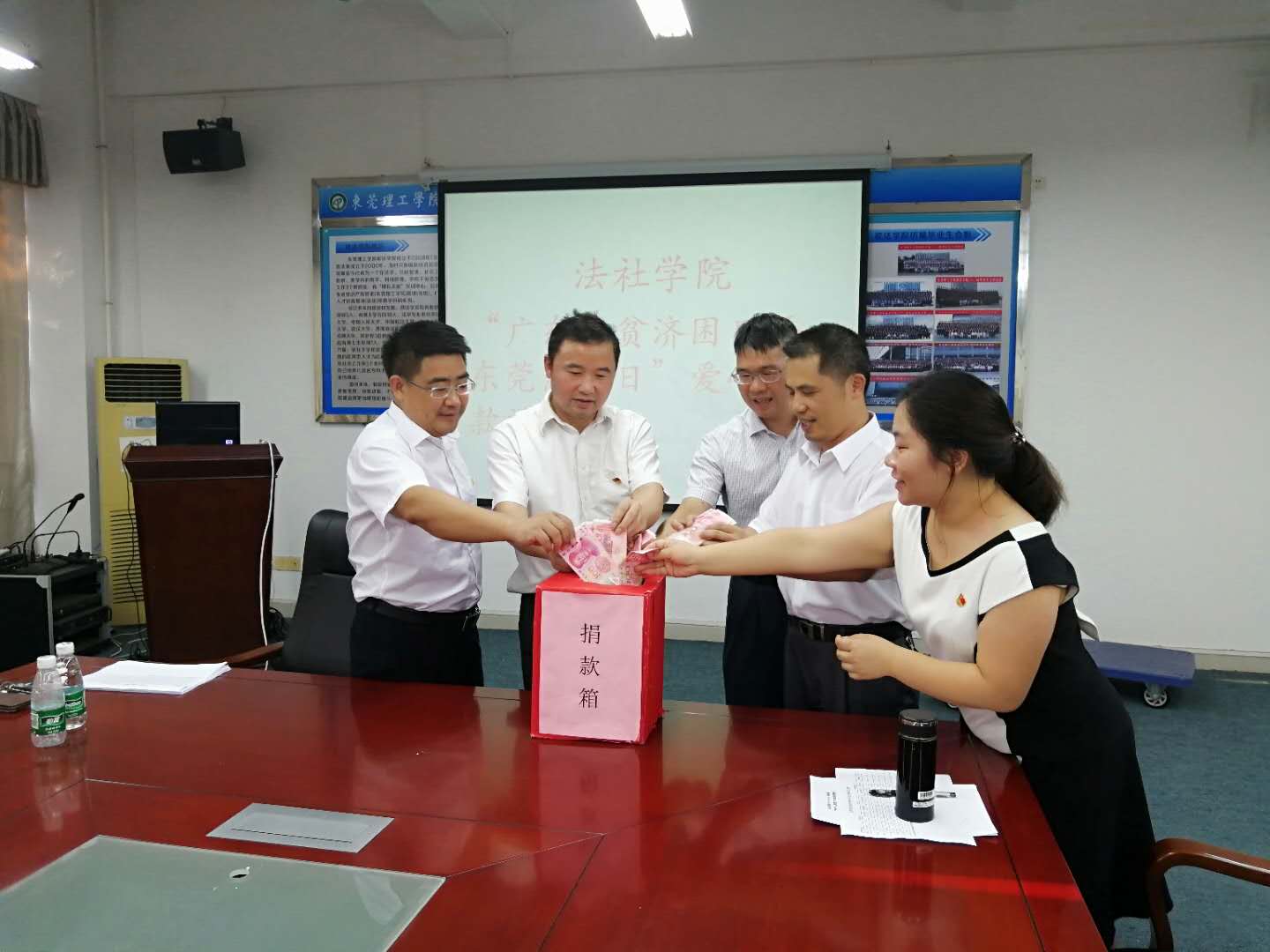 6月28日,为深入贯彻落实党的十九大精神和习近平总书记重要讲话精神,坚决打赢脱贫攻坚战,公司教职工在松山湖校区经管楼208会议室举行2018年广东省扶贫济困日暨东莞慈善日捐款活动。公司领导强昌文经理、潘荣新书记、夏能礼副经理、丘永辉副书记以及公司教职工代表参加了此次捐款活动。