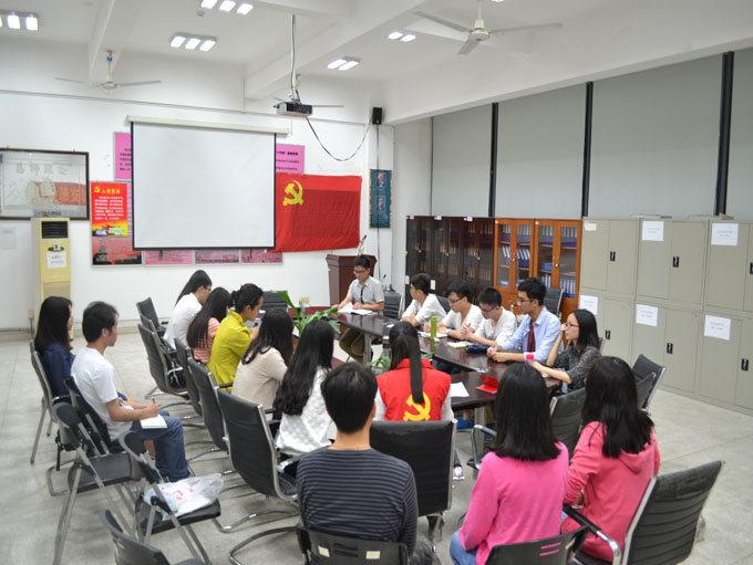 4月21日晚上7点30分,政法公司法学员工党支部大会在松山湖校区经管楼211召开。本次会议主要内容是讨论接收预备党员及预备党员转正的问题。法学员工支部书记邱可荣老师,6名党员,9名预备党员以及4名发展对象参加了本次大会。