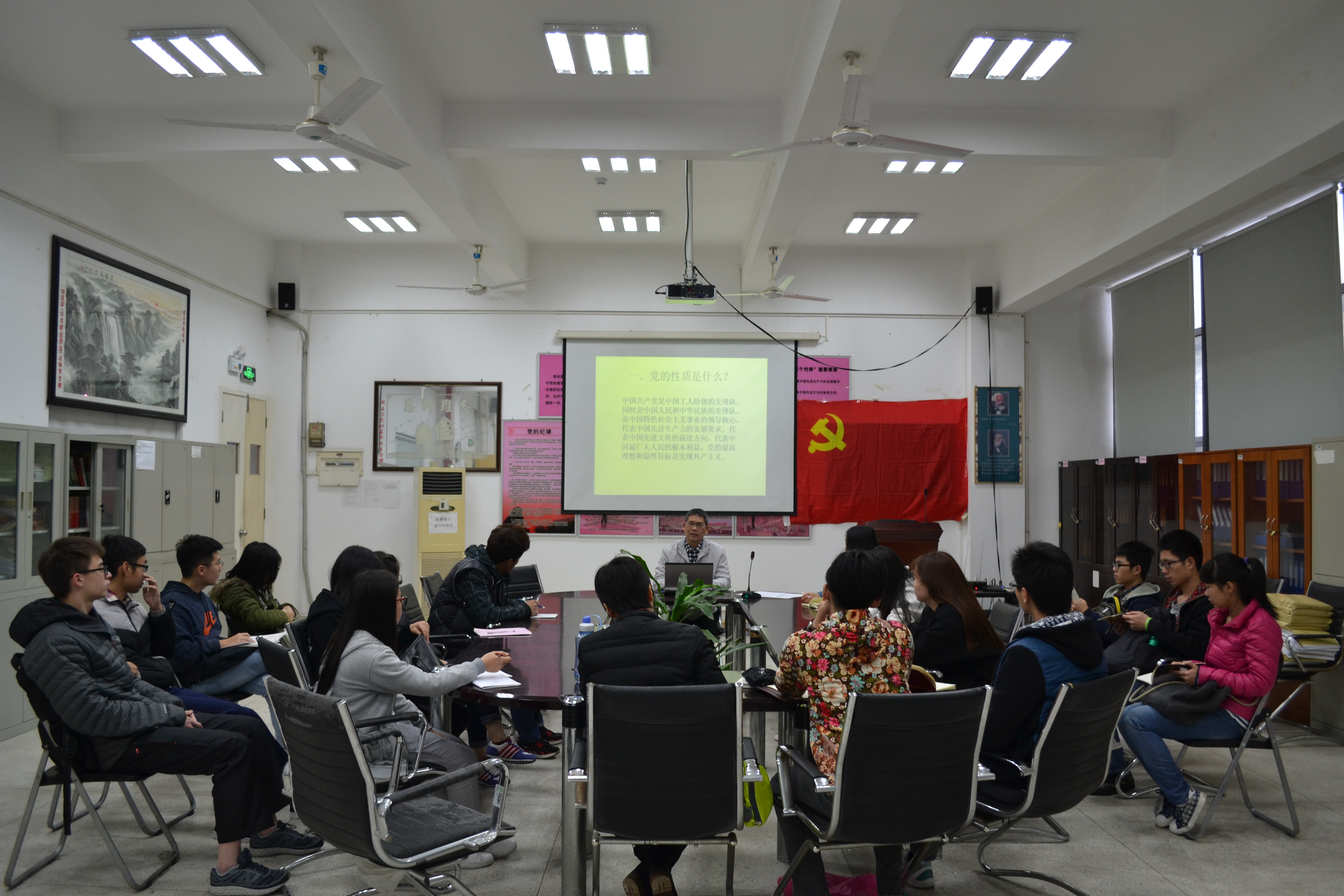 首先潘书记点明这次的主题是:党章学习与发展中常见的问题。首先潘书记先问了积极分子有没有看过党章。接着,潘书记提出了一个问题:党的性质是什么?详细介绍之后又着重介绍了党的纪律——常见的违纪问题;党员的发展条件;党员义务;党员权利;党的纪律;党的宗旨;思想汇报的要求和常见的错误。在这个过程中潘书记一直教导我们,作为党员一定要发挥先锋模范作用,在困难面前不退缩,起带头作用引领大家走出困境。党员要接受更严格的约束,要自觉、真诚,不能违背党作出的决定和遵守党的规章制度。