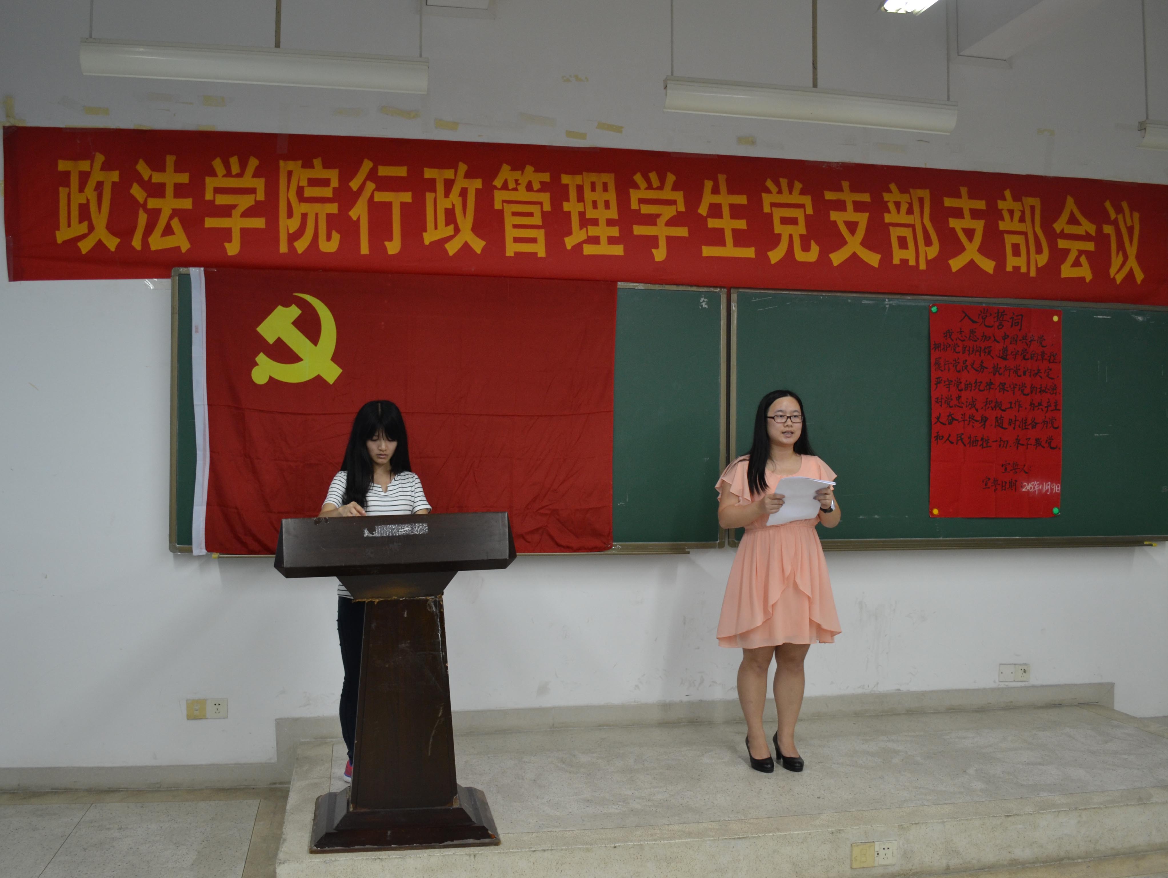 预备党员作自我介绍 入党介绍人进行推荐 正式党员举手投票表决 11月9日晚上7点30分,政法公司行政管理员工党支部大会在松山湖校区经管楼216召开。本次大会主要讨论了接受预备党员、预备党员转正问题。行政管理党支部书记邓磊老师以及十三名党员和入党积极分子参加了本次会议。 本次会议在主持人主持下,首先就让刘宇、卢静林、梁惠芳等7名发展对象进行自我介绍并由其介绍人进行推荐,同时让各位正式党员发表意见,进行讨论和提问,最后投票表决一致通过。该会议的第二项议程便是预备党员转正的事宜。叶创新、黄凯敏两位同志及其培养人分别作了发言,与会党员讨论提问,由正式党员举手表决通过并庄重严肃进行了宣誓。上述两项事宜讨论结束后,本次会议最终结果将提交给校组织部审核公示。 大会最后,邓磊老师进行了工作总结发言,希望党员能够充分发挥模范的作用,为后辈树立榜样,并且抱着一种为同学服务的精神,多做贡献,多与公司公司交流,让自身的价值得到体现,让自我得到他人和党组织的承认。最后,邓磊老师衷心祝福和感谢各位同学,愿大家越来越出色。 直至8点30分,整个会议在掌声中结束了。 (摄影:郑凯浩 记者:杨亦斌)
