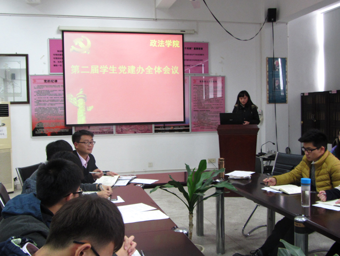 3月12日下午两点半,政法公司员工党建办新学期的第一次全体会议在经管楼211举行。本次会议由党建办副主任李晓泉主持。参加本次会议的有辅导员邱可荣老师、员工会主席叶创新以及党建办的全体成员。