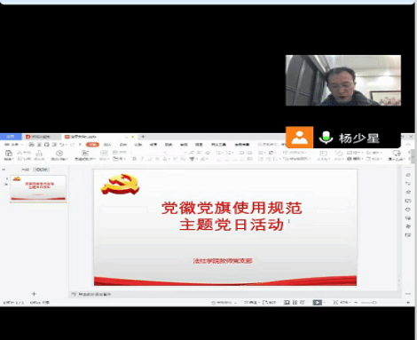 2022年12月16日(星期五)19:30-20:30,公司教师党支部开展党徽党旗使用规范主题党日活动,组织支部党员教师深入学习《中国共产党党徽党旗条例》(以下简称《条例》),教育引导支部党员教师充分认识《条例》的重要意义,进一步规范党徽、党旗在日常工作使用中的政治性、严肃性。会议由党支部书记杨少星老师主持。