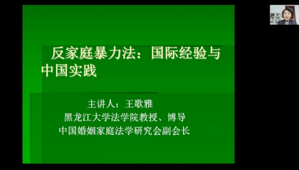 紧接着,王歌雅教授从国际经验方面向我们普及了反家庭暴力法的由来以及其历史发展,向我们介绍了国内外反家庭暴力的立法。王歌雅教授具体分析了我国的《反家庭暴力法》,王歌雅教授以案例与条文相结合的方式,让同学们更好地理解了我国《反家庭暴力法》在现实生活中的实施与运用。