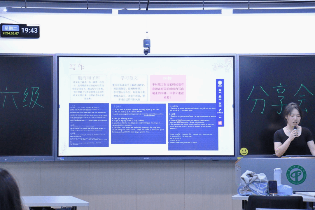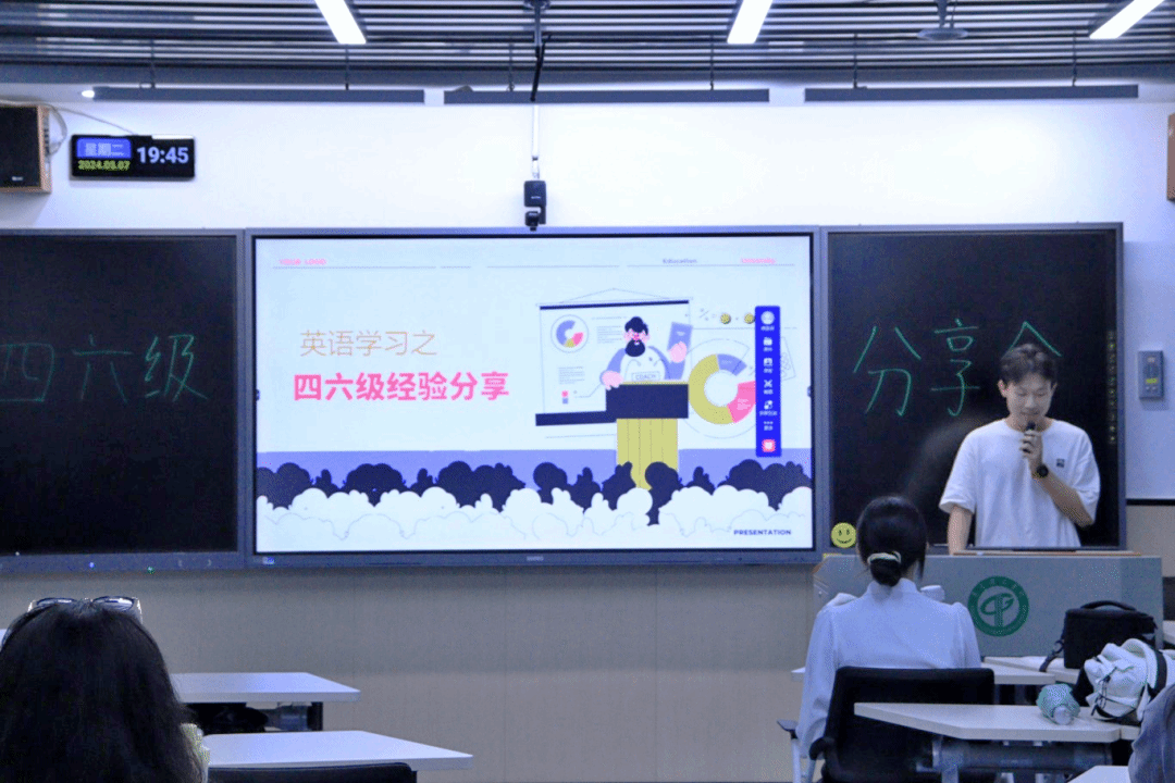 首先,由张琪为大家进行经验分享。她针对英语四六级的题型设置,从听力、阅读、翻译和写作四个板块入手,对每种题型进行了深入的分析。张琪师姐强调要进行持久的听力训练,作好听力积累,并要通过有效练习提高做题的效率,把握好考试时间。此外,张琪师姐还介绍了利用在线资源如学习软件和网站来辅助学习,并鼓励同学们保持积极的学习态度和良好的学习习惯。