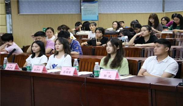 会议伊始,彭丽丽同学首先分享自己的考研经验。她根据考研的不同阶段,将分享内容分为择校、初试、复试等部分,向在场的同学阐述了自己从备战到临考期间详尽的准备工作,还介绍了时间安排方面的一些技巧。随后,郭雪美同学分享了自己的学习安排。她根据考试科目分成政治、英语和专业课三大部分;并且从时间安排、复习方法、备考用书到选择老师进行了全面总结,分享给在座的同学。除此之外,叶福怡同学还给同学们的日常学习提供了许多建议,诸如利用APP、网课等工具加强基础,以及考试前后的心态调整以及学习节奏的掌控。接着,张澄轩同学分享了自己老员工活中从最初成绩不佳到实现“逆袭”的经历,总结了自己发生改变的原因和心态变化;考试具体内容方面,强调了英语单词背诵和政治时政这两部分的重要性。