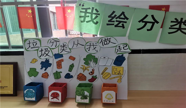在本次活动中,志愿者们主要是通过手工制作宣传墙的形式传递垃圾分类的知识。志愿者们先分好两组,进行组内分工后,快速投入自己负责的工作中。志愿者们先后进行了筛选制作宣传墙背景、折纸、在卡纸上进行绘画、将图案裁剪粘贴到宣传墙上的工作,最终顺利完成了两个宣传墙的制作。