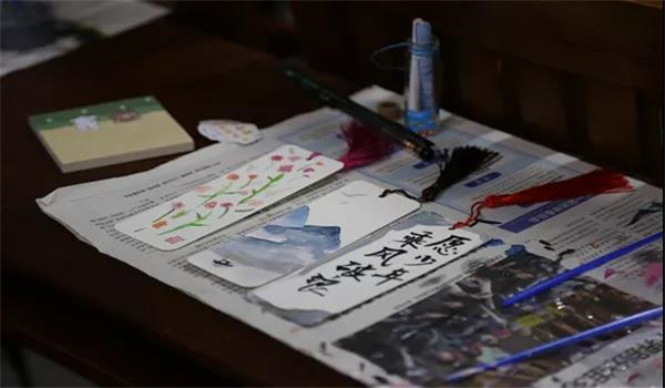 紧接着,书签DIY活动也在欢声笑语中拉开了序幕。工作人员为同学们提供了制作材料,面对空白的书签,同学们天马行空、巧动双手,大胆发挥了想象力和艺术创作能力。他们尽情释放自我,制成的书签各具特色、富有趣味。
