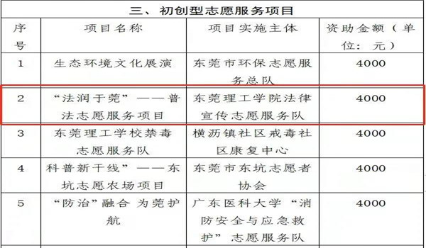 近日2021年东莞市“益苗计划”获奖项目和组织名单已公布,以公司的名义参赛的公司老员工普法志愿项目“法润于莞——普法志愿服务活动”获得立项扶持。