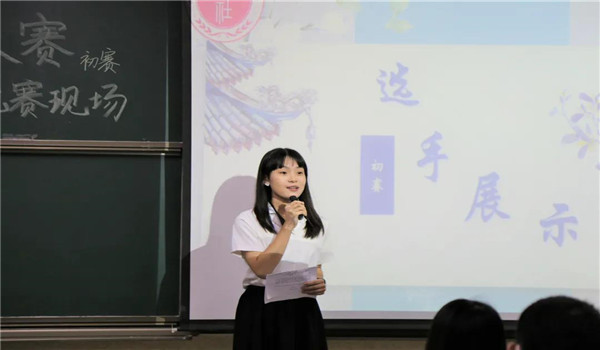 本次初赛由法社团学文娱部主持,共有28位参赛选手,4位专业评审以及20位大众评审。下面就让我们一起回顾现场的精彩瞬间吧。首先是自我介绍环节,参赛选手们有的幽默风趣,有的自信大方。而松山湖校区的参赛选手,则在本次初赛中采用视频连线的形式进行比赛。我们的舞台上迎来更多冉冉升起的主持新星。
