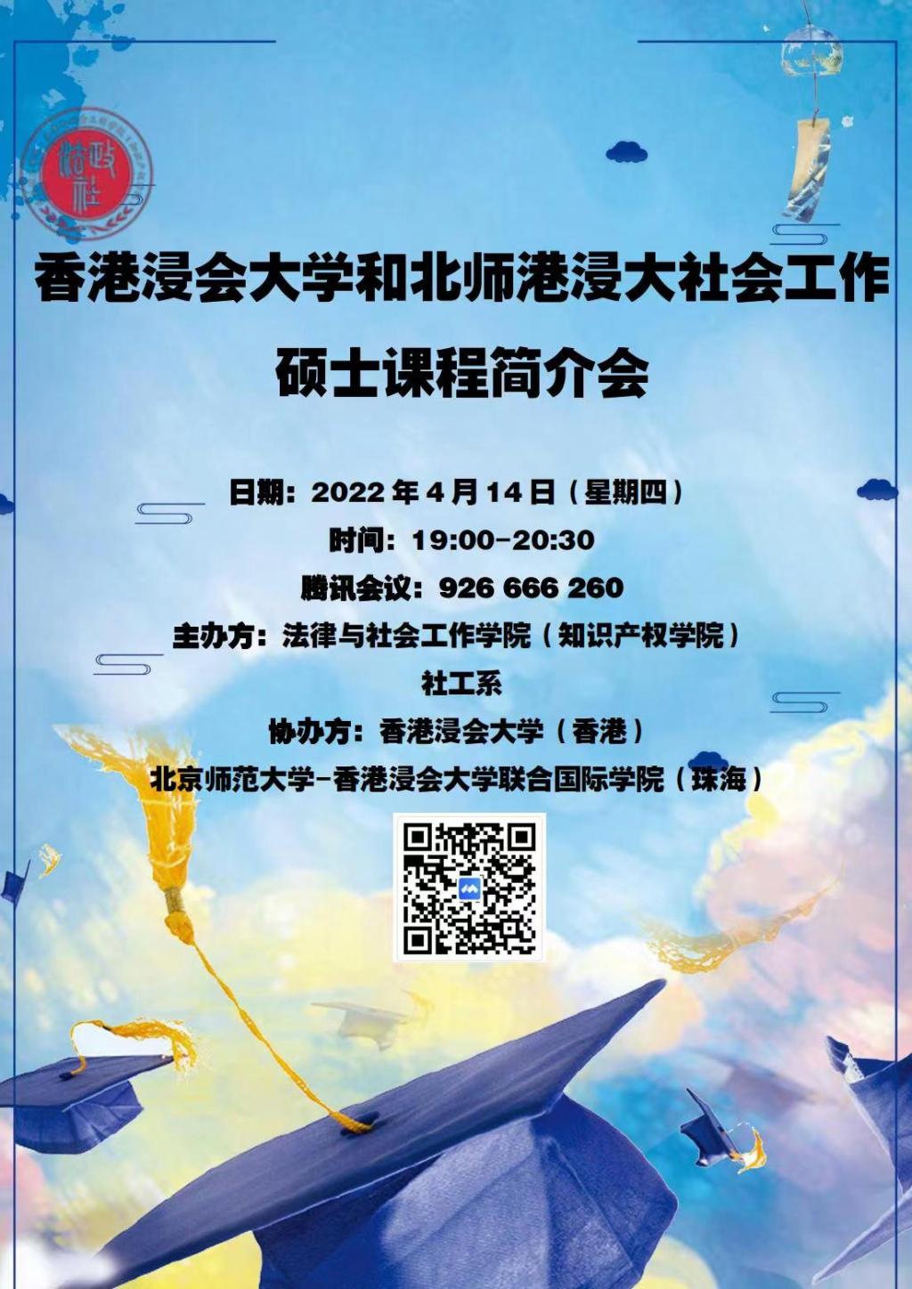2022年4月14日晚19:00开始,伟德官网社会工作系在线上举办社工梦·启航|香港浸会大学和北师港浸大社会工作硕士课程线上宣讲会。本次讲座特邀北京师范大学-香港浸会大学联合国际公司(简称北师港浸大)社会工作与社会行政专业系主任陈錦棠、黄匡忠教授、邓美结博士、谭雅倩博士、王姝萍老师和谭凌老师为香港浸会大学和北师港浸大社会工作硕士课程做讲解与宣传。社会工作系主任成伟主持本次讲座,公司经理郑玉敏、社工系副教授卢俊、丁淑娟老师、社工实验员张子庄,同时还有来自公司各专业的员工共计近200人参与本次线上活动。