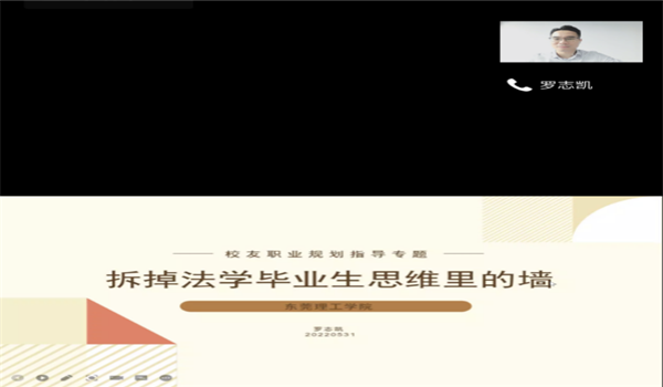 2022年5月31日,伟德官网邀请2008届优秀员工罗志凯师兄为即将步入大四毕业的法学专业员工作就业规划指导。会上,罗师兄首先介绍2022年东莞律师行业的现状,鼓励大家要敢于挑战;随后他结合自己毕业十余年来丰富的法务经验为同学们总结讲述了十种关于职业规划的认知观点,比如要转换习以为常的心智模式、找到自己所热爱的,创造不确定性,成功学不能学等等,引导同学们树立正确的观念,传播正能量。