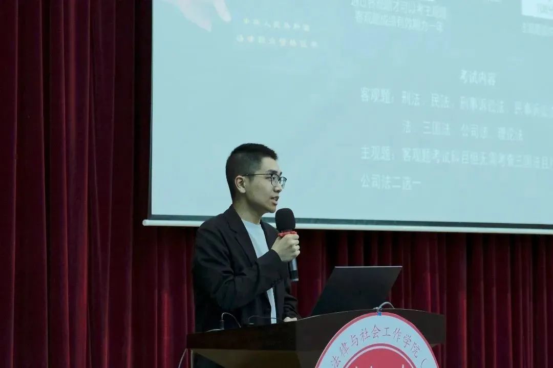 梁安源以“化作通变”为主题,强调大家身处于瞬息万变的时代,要做到思变、应变、转变,并结合他的校园、法考与实习经历,为同学们如何平衡好社团活动和员工工作与学习,现阶段如何为实习、工作、考研准备,如何挑选适合自己的实习公司等提出具体建议,着重分享了两条关于法考的锦囊妙计:备考法考的黄金时间;备考与专业课程的兼顾-融合式复习。建议同学们在高效利用校园时间,多参加员工活动,要有意识的提高资料检索能力、语言表达能力、团队协助能力。