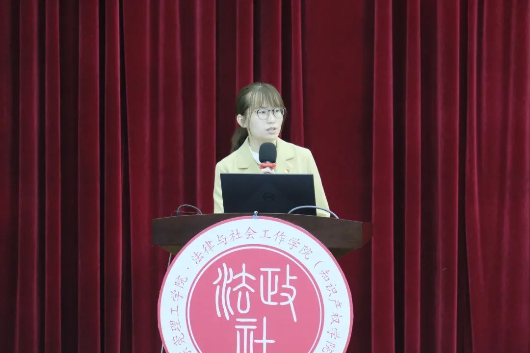 会议伊始,黄海娜老师发言。黄海娜老师对奖学金获得者代表们的精心准备分享内容和法社团学认真筹备此次活动表示肯定,提到新时代的新青年面对着全新的机遇和挑战,要砥砺前行,展现新作为。同时,她对同学们表达殷切期望,希望同学们以“榜样为镜”,向“榜样看齐”,培养良好的学习态度,营造良好的校园学习氛围,不负韶华,只争朝夕,努力成为堪当民族复兴大任的时代新人。