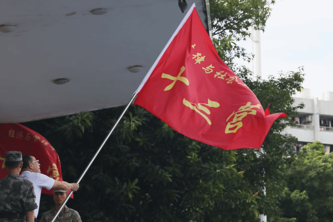 营旗猎猎,红旗飘飘,鼓动着新生们对军训生活的期待与向往,寄托着公司对于新生们勇往直前、不断奋进的殷切期盼,更承接着历届军训新生的热情与坚毅。相信法社学子定能不负期望,在接下来的军训生活中展示出法社英才的精神面貌,不负青春之我!在军训中不断成长进步,继往开来,追求卓越,引领未来!