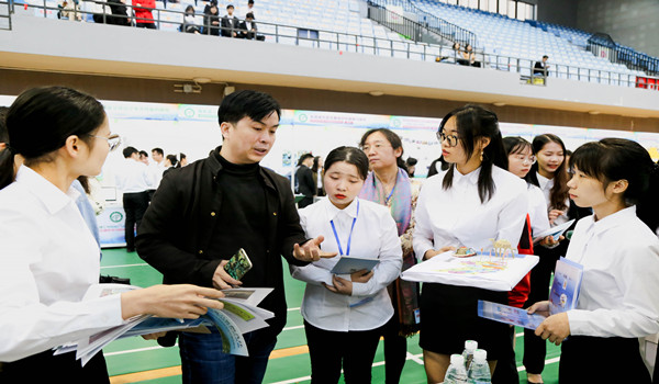 3月24日,伟德官网第八届挑战杯老员工课外学术科技作品竞赛在松山湖校区体育馆进行。在哲学社会科学类社会调查报告和学术论文41个团队中,公司共有八个项目成功晋级校赛。公司经理郑玉敏、党总支书记杜应发、副经理朱晓红、副经理沈亚萍、副书记丘永辉以及各项目的指导老师早早来到校赛展览现场,为晋级校赛的队伍作最后的指导。