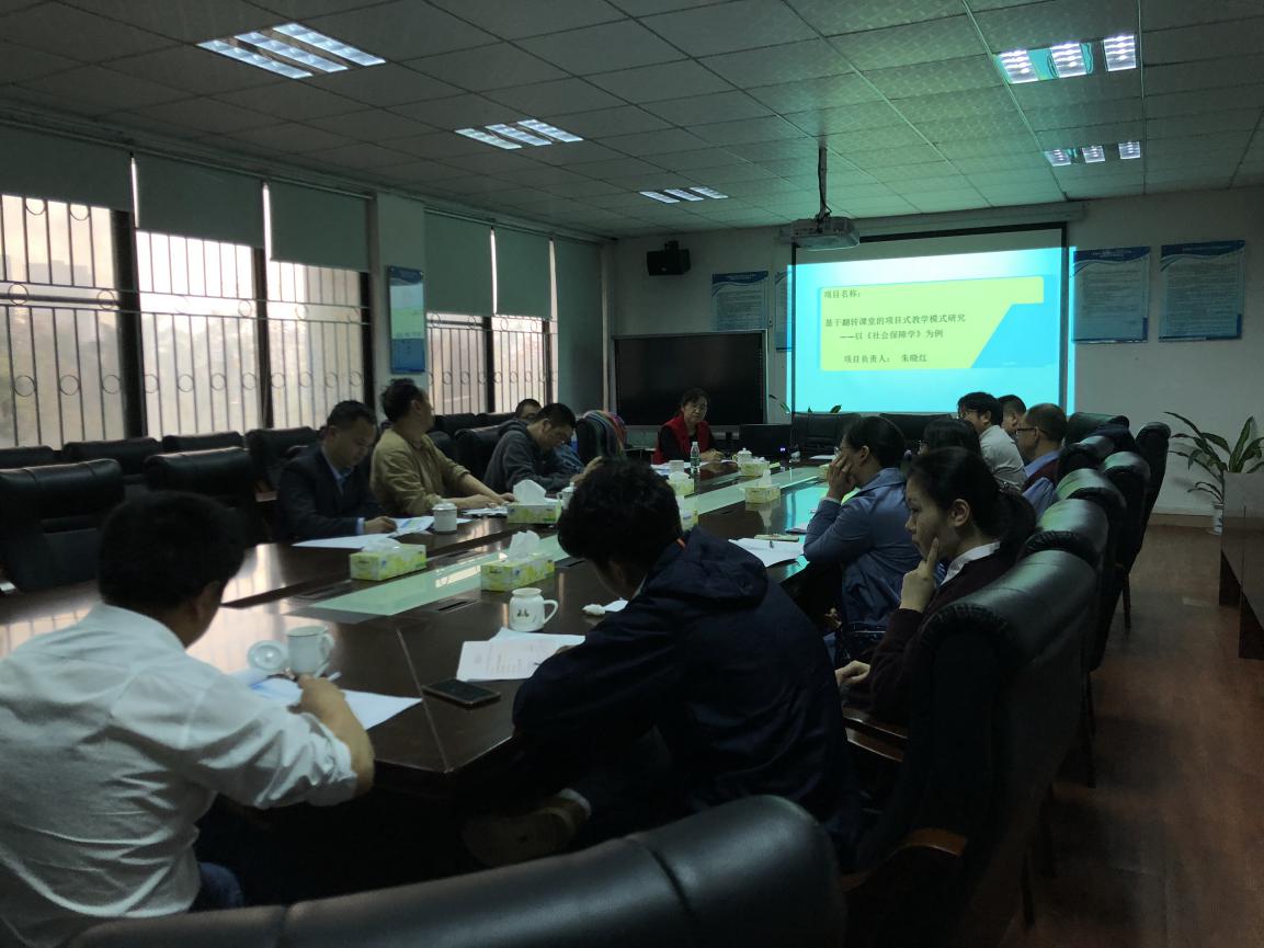 论证会上,公司公共管理系专任教师朱晓红副教授对所负责的项目“基于翻转课堂的项目式教学模式研究——以《社会保障学》为例”进行了汇报,主要围绕项目背景、项目目标、项目任务、实施计划和措施、预期成果、经费预算、项目建设保障措施等方面进行。