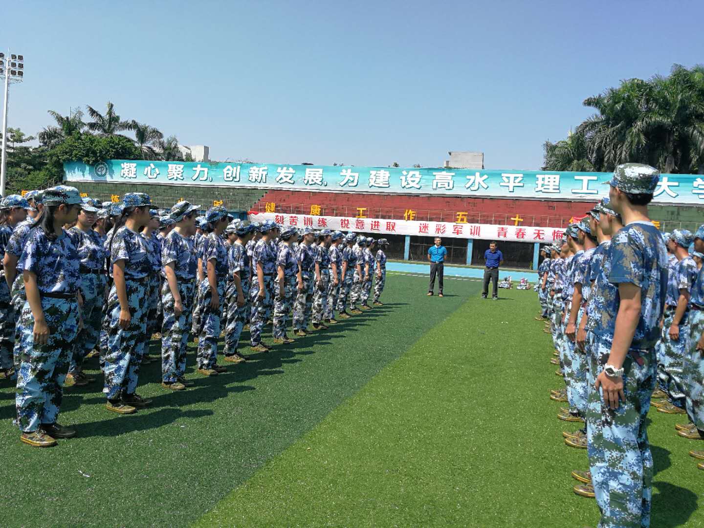 在连队中强经理用自己当兵的事例,激励2018级参训新生,希望他们能够顶住烈日,坚持完成军训各项科目,争取在最后的汇报演出中获得优异的成绩。潘书记也给用自己所见所闻,鼓励同学们认真训练,好好利用军训这个机会锻炼自己,为大学四年的学习与生活打下坚实的基础。最后丘书记为同学们再次打气加油,让同学们安心训练,公司会为同学们解决各种后勤问题,争取给公司取得军训的佳绩。
