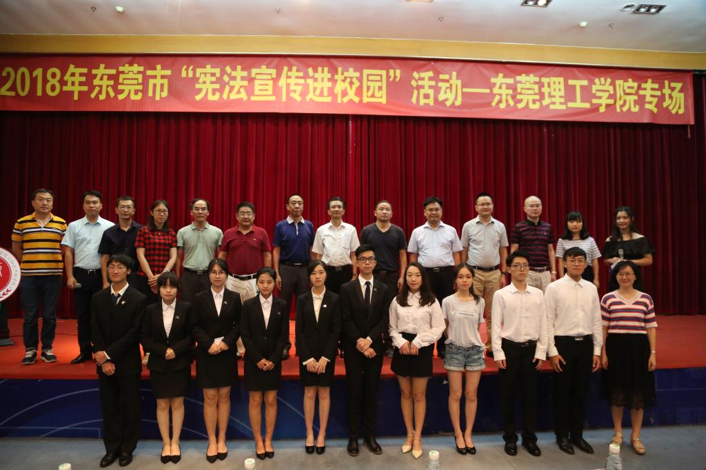 5月24日下午,东莞市司法局、市普法办携手公司伟德官网,联合东莞电视台、东城街道等相关政府单位在莞城校区学术报告厅举办了“2018年东莞市宪法宣传进校园”普法活动。东莞市司法局副局长袁洪昌、东莞广播电视台副台长郑远龙、东城街道党委副书记吴沛林、伟德官网经理强昌文及副经理夏能礼等领导出席了活动。 本次活动以情景剧再现了老员工就业性别歧视现象,通过就业平等与否的激烈辩论引发员工学法兴趣与思考,最终以教师点评、宪法知识有奖竞答、集体诵读宪法条文和赠书仪式等环节创新了校园普法的方式,共计吸引了师生三百余人热情参与。 袁洪昌副局长指出,青少年法制教育是全面依法治国战略的基础性工作和长期性工程,把法制教育纳入国民教育体系,并在国民教育体系中系统规划和科学安排是法治建设的重要任务。希望同学们在学习法律与知识的同时要更加注重法治信仰的培育,把法治精神、法治理念根植于心,充分发挥自己的特长,带动身边的人学法、尊法、守法、用法,当好法治理念的传播者、维护者,争做一名优秀的社会主义法治人才。 本次活动将在东莞电视台《与法同行》栏目播出。