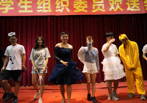 首先,由嘉宾上台发言作为欢送会的开幕。党建办主任霍汝君,团总支秘书长彭科超和员工会主席陈慧聪先后上台发言,表达了各自感慨,同时预祝欢送会顺利举行。随后,欢送会表演正式开始。干部们带来了不同形式的表演,分别是歌曲串烧《晴天和岁月神偷》、小品《瞬间爆炸》、汉服走秀、舞蹈《None》、维密大秀、小品《反叛的童谣》、舞蹈串烧、歌曲《欢送会》等,每场表演都引起台下观众的沸腾,气氛十分活跃。接着是抽奖环节,分别抽取了一等奖一名,二等奖两名,三等奖三名以及幸运奖十名,并合影留念。最后,在笑声中参与本次欢送会的全体人员拍摄大合照。