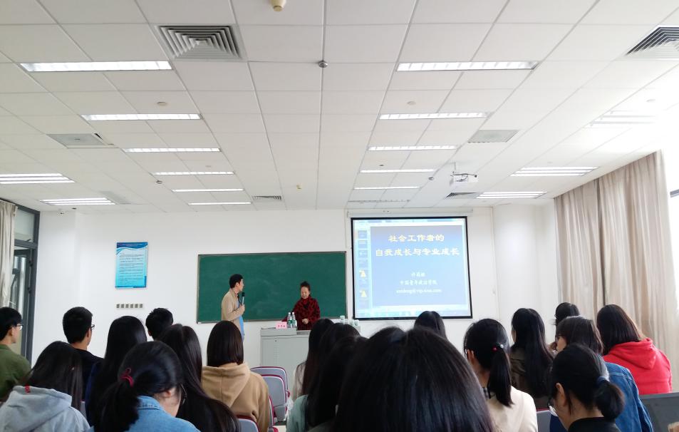 2017年12月7号下午两点,中国青年政治公司社会工作系主任、中国社会工作教育协会公司青少年专委会主任许莉娅副教授应社会工作系的邀请来到伟德官网,在伟德官网莞城校区社会工作技能实训中心开展了主题为“社会工作者的自我成长与专业成长”的讲座。