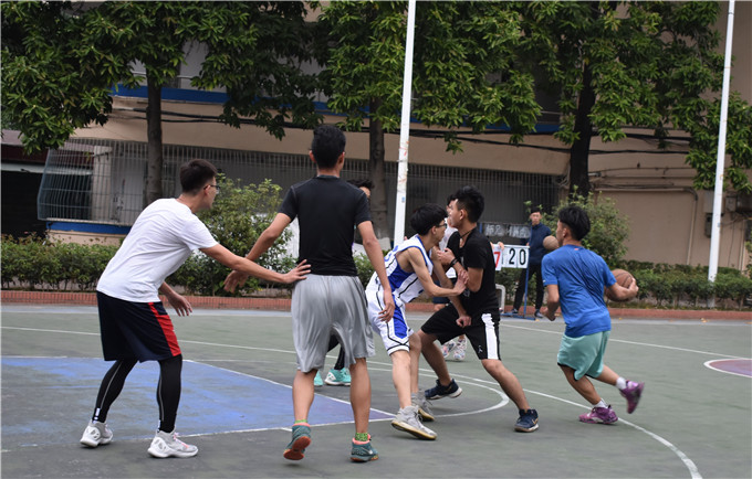 16点30分比赛准时开始。师兄队先行上篮得分,小鲜肉队也紧跟其后。双方都使出了浑身解数,不敢怠慢不敢轻敌。虽然师兄队比分一直领先,但是鲜肉队丝毫没有放弃的意思分分紧随其后。比赛期间两对的比分曾一度拉大,但小鲜肉队不断改变战术,将比分缩小。最终师兄队与小鲜肉队的比分为100:87,师兄队率先攻下一百分,获得了比赛的胜利。