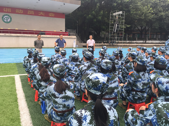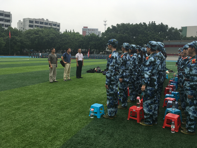 9月7日是17级新生军训的第一天。上午,强昌文经理、潘荣新书记、丘永辉副书记一行到操场看望各位新生。