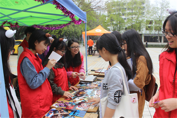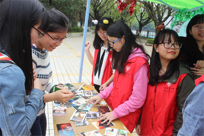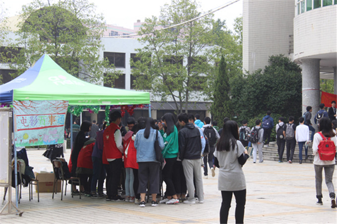 3月23日中午,伟德官网团总支志愿服务站的小干事在第一饭堂门前撑起帐篷,布置好桌椅,开始“猜影大师”的百事通活动。干事们首先把事先准备好的电影场景照片陈列在桌面上,同时现场也可以观看这些好电影的小视频,吸引了不少路经饭堂的同学们。