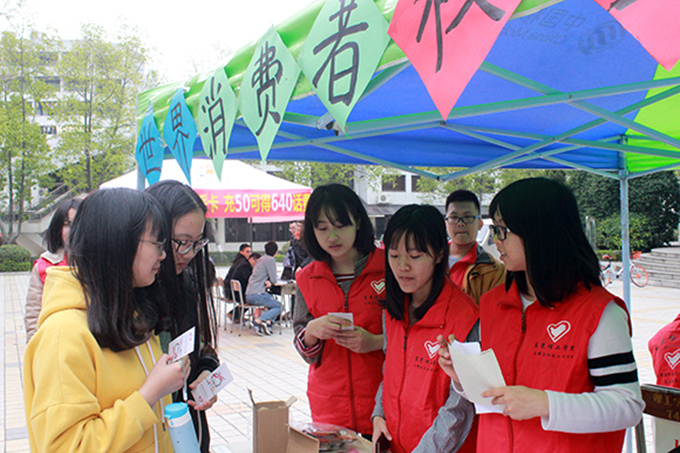 3月15日,伟德官网团总支法律宣传志愿服务队于世界消费者权益保护日,在一饭门前开展摆摊活动,宣传消费者权益保护知识。