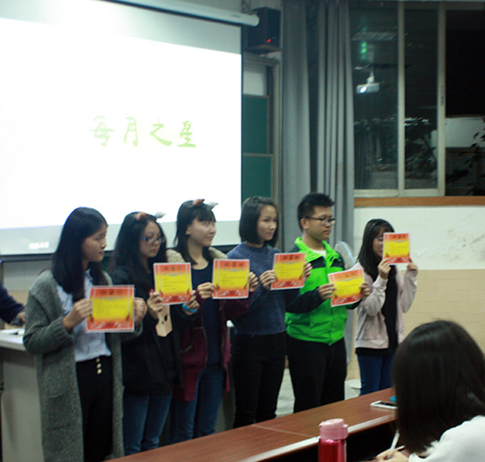 首先是第二副书记陈晓莉的发言。接着是部长们和干事代表的发言环节,各位部长总结自己部门的工作情况,并对干事们在工作和学习上的期望。干事们也轮流上台表达了自己对自己一个学期以来对团总支的感想。接下来是游戏环节,智力考验、正话反说两个游戏带给了大家许多欢乐,也增进了伙伴之间的合作;稀奇古怪的惩罚环节也带动了全场气氛。紧接着进行每月之星的颁奖环节,由副书记张喜劲为干事们颁奖并进行拍照留念;视频回顾了这一学期来团总支的历程,大家既有欢乐也有感动。然后是团总支书记邱可荣的发言,希望各个干事在团总支能有所收获,能交到志同道合的朋友,能以服务的心为整个公司;并希望干事们能注重学习与工作,在考试周能认认真真复习,最后预祝大家圣诞快乐。