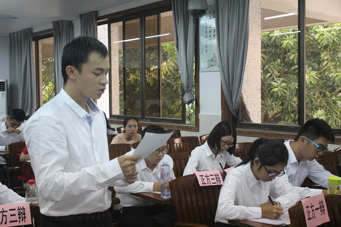 10月28日下午及晚上,伟德官网在3309教室开展了新一轮的小组辩论赛,双方辩手都各展风采施展辩才,围绕着老员工支教的利弊关系展开辩论。伟德官网辩论队谭乐、黄鑫杰、张婷婷、陈卓翰、李敏慧、雷蕾、池翔、郭为作为评委参与本次比赛。