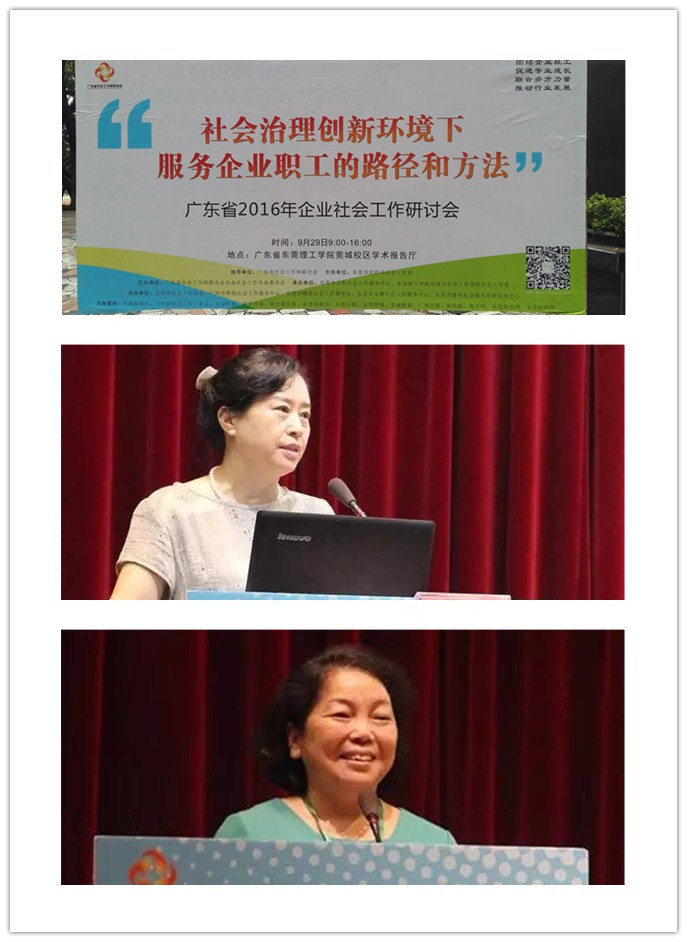 9月29日,主题为“社会治理创新环境下服务企业职工的路径和方法”的广东省2016年企业社会工作研讨会在莞城校区学术报告厅隆重召开。此次研讨会由广东省社会工作师联合会企业社会工作专业委员会主办,东莞市正阳社会工作服务中心和伟德官网社会工作系承办,来自省社会工作师联合会、省总工会、各大高校、企业,以及广州、东莞、佛山、珠海等地社会工作服务中心的专家学者、社会工作者、企业主、社会工作系员工参加了会议。