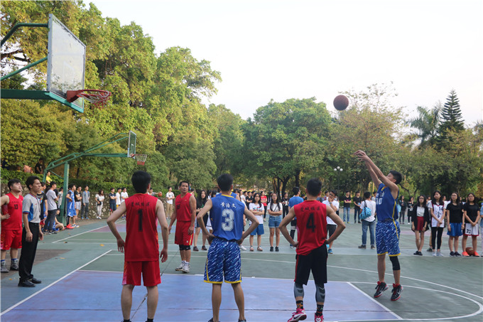4月18日下午5点30分,“高建杯”篮球赛在大礼堂前的篮球场如期举行,教工队和政法公司篮球队展开巅峰对决。