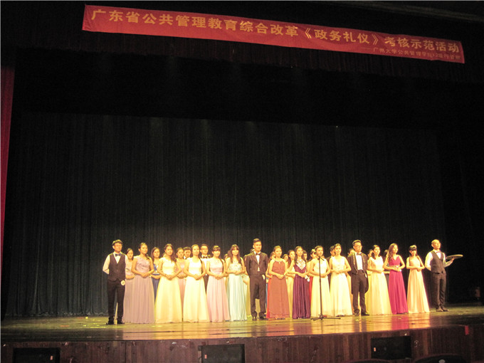 为加强高校间的学术交流,2015年10月29日,政法公司汪辉勇教授应邀参与由广州大学主办的广东省公共管理教育综合改革政务礼仪考核示范教学 暨《政务礼仪》课程教学研讨会,与来自广州大学的王枫云教授、廖新聪教授、徐凌副教授、来自桂林电子科技大学的廖桂宇教授等一起探讨公共服务礼仪的课程教学,并在现场观看广州大学公共管理公司12级行政管理专业的课程成果展示。