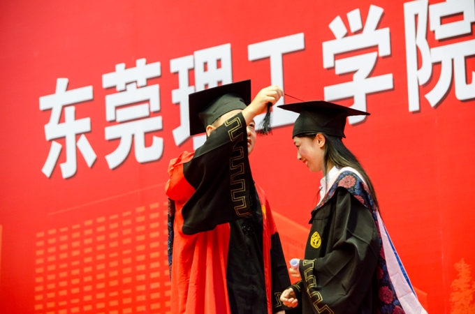 最后到了扶正流苏环节,经理强昌文为每一位毕业生进行拨穗,将流苏由右前方的边捋到左前方的边,每一个动作都是在校生正式毕业的标志,也是经理代表母校对毕业生们求学于此的肯定与衷心的祝福。
