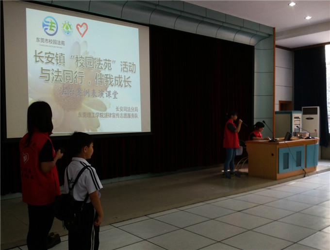 2015年5月14日下午,伟德官网政法公司法律宣传与志愿服务队迎来了本学期所剩不多的一次出队活动。本次活动主要是协助长安司法分局到长安镇中心小学举办长安镇校园法苑活动,活动主题是与法同行,伴我成长之法治案例表演课堂。