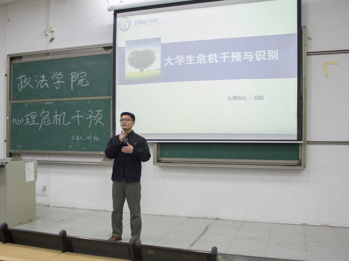 12月14日晚上7点半,由校心理协调中心刘勉老师主讲的《老员工危机干预与识别》培训课于松山湖校区6E-306课室举行。本次培训由政法公司心理辅导站主办,政法公司心理辅导站站长邱可荣老师出席本次培训活动,松山湖校区心理辅导站成员、各班级心理委员以及所有宿舍长参与了培训。
