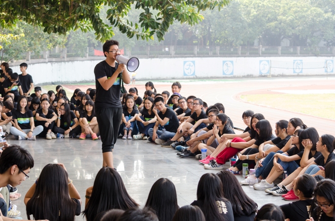 在政法公司员工会主席叶创新和团总支常务副书记袁智勋的讲话后,宣布本次拓展活动正式开始。拓展活动分为盲人过河,水杯传送,夹气球接力跑,信任危机四项活动。众新干事将分为10组,分别由团学委员担任各组的领队。各组人员在进行完本组的精彩展示后,便开始挑战四项拓展项目。