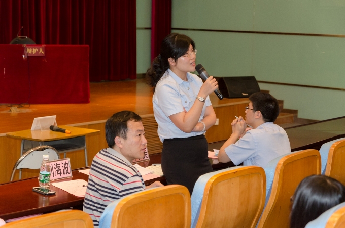 东莞市中级人民法院刑二庭副庭长蒋小美耐心解答同学们的问题