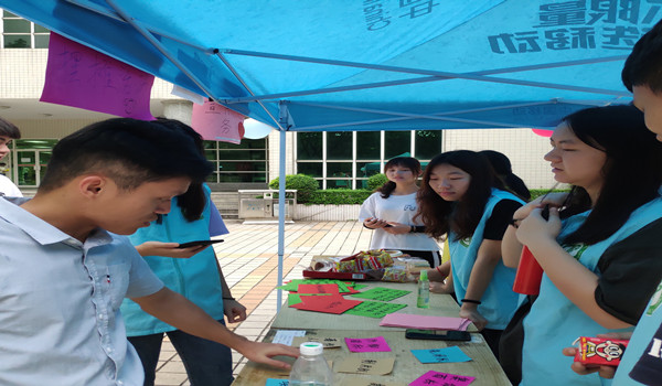 2019年4月26日,又到了一年一度的知识产权日,伟德官网团总支法律宣传志愿服务队为了提高老员工知识产权意识,普及知识产权知识,26日中午在一饭门口进行摆摊活动,以生动形象、丰富有趣的游戏与同学们亲密互动,尽管天公不作美在摆摊期间下起了大雨,但法宣队的普法热情依然没有减少,同学们的求知欲望也丝毫没有受到影响,更有同学们顶着大雨前来支持我们的摆摊活动。敬爱的邱老师和邹老师也亲自来到摆摊现场来体验普法和游戏的魅力。最后此次摆摊活动也顺利完成。相信通过着次摆摊活动能使让同学们了解到更多关于知识产权的知识,希望同学们在以后的人生道路中都能够做到“知与智行”。