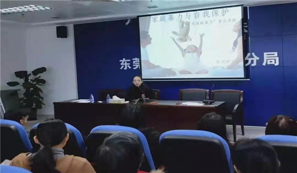 12月7日上午十点,迎着冬日里久违的暖阳,2017级法学卓越班的邓心乐同学代表东莞理工伟德官网来到东莞司法局东城分局进行“家庭暴力与自我保护”普法宣传活动。