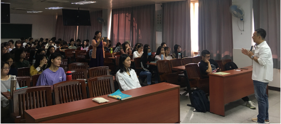 谢慧龙老师在东莞广播电视台从事一线新闻采编工作长达16年,多次参与东莞重大事件新闻策划采编工作,擅长在新闻现场沟通协调及全方位挖掘选题等能力。谢老师结合采编工作,将他参与过的新闻背后的故事娓娓道来,例如东莞共享单车、东莞援鄂医疗队、东莞公办公司午托的取消与恢复、东莞南城临停车辆计时收费等,尤其是重点讲述了今年5月初受到全国关注的虎门大桥事件的报道案例,引起了同学们极大的兴趣。谢老师从媒体融合的传播特点出发,探讨在面对公共事件时,新闻舆论工作如何强化阵地意识,回应社会关切,公开发布信息,积极引导舆论,体现媒体的责任担当和社会价值。