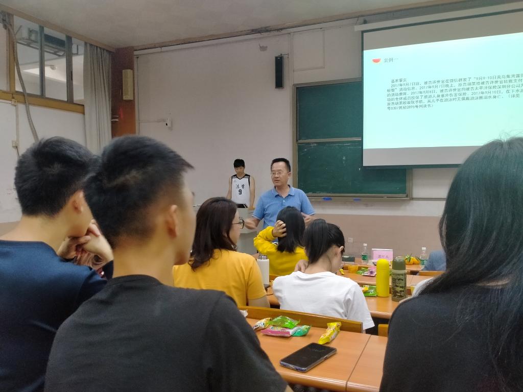 10月22日下午,2020级法学(专插本)1班在莞城校区第一阶梯教室举行了《民法典》研讨会。本次研讨会旨在学习民法典精神,对接地方法制建设需求,营造学习法典并运用法典、崇尚法典的良好学习氛围。参加研讨会的嘉宾有吉海荣老师、龚红兵老师以及韩中节老师,通过对共签共债、参加危险活动损害赔偿、高空抛物以及婚内出轨四个话题的分享现场师生学术探讨交流以及老师点评,营造了良好的学习氛围,提高了团队学习能力。同学们在这场民法典研讨会上收益颇丰! (民法典研讨会)