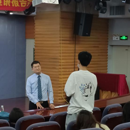 讲座前,徐洪辉律师以“法律职业共同体”一般包括哪些职业?一般具有哪些共同特征?分享看过的法律类课外书籍与电影这两个方面进行讲座前的互动,调动了同学们的积极互动性。从职业“围城”心理/“狗兔相争”、“入行”前的兜兜转转、“入行”后的笃定自信,以职业发展的不同阶段为大家分享亲身经历,从而使其分享的主题与职业感悟更为的深刻、打动人心。对于律师的职责和工作,徐律师坦言:“虽然辛苦、虽然疲劳、虽然心理负荷重,但为当事人据理力争,毫不退缩”,是律师职业之情怀使然,也是法律之信仰使然,更是人生之理想使然。徐律师以法庭上善于使用“道具”、诉讼中善于使用“图表表达”、庭审中善于“讲故事、打比喻”等方面分享其职业实践的积累与总结。同学们积极提问、收获良多。