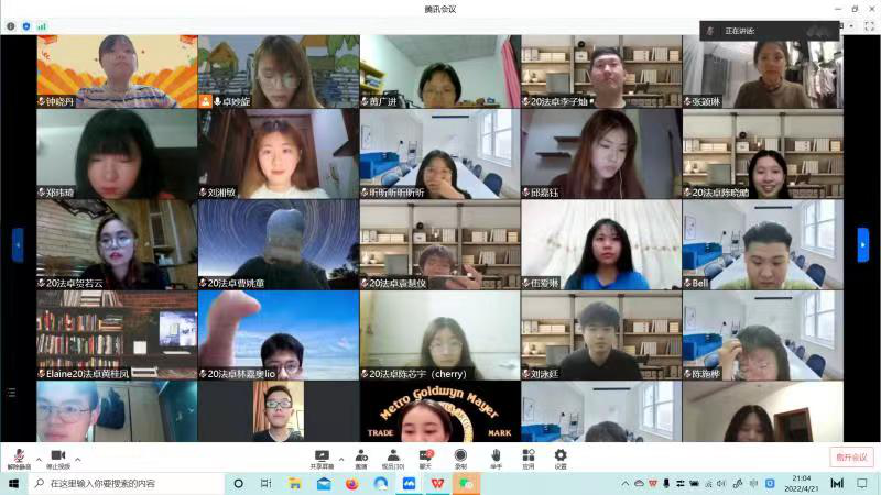 疫情当前,居家学习之余,公司为了激励法学专业员工更好地培养紧跟时事的敏锐洞察力,充分发挥司法案例的指导作用,促进员工对法条的综合学习,增强员工对于法律适用规范与类案裁判尺度理解,2022年4月21日晚,20级法学卓越班“以案释法”演讲比赛于线上腾讯会议正式举行。本次活动由卓妙旋同学主持,并邀请了法律系主任罗兆婧老师、法学博士黄广进老师作为嘉宾参加本次活动。