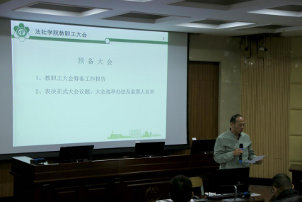 按照校工会工作要求,伟德官网此次教职工大会分为两个阶段进行,第一阶段召开预备大会,分工会主席汪辉勇教授作教职工大会筹备工作报告,紧接着,全体教职工举手对此次正式大会的议题、选举办法及监票人名单进行了表决,全体通过。
