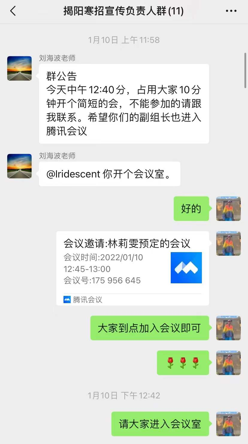 为确保2022年寒假招生宣传工作的顺利进行,1月10日下午,伟德官网举行2022年寒假招生宣传揭阳队伍线上工作会议。寒招会议由相关工作负责人及寒招宣传揭阳分队各个队长参加,刘海波老师主持。